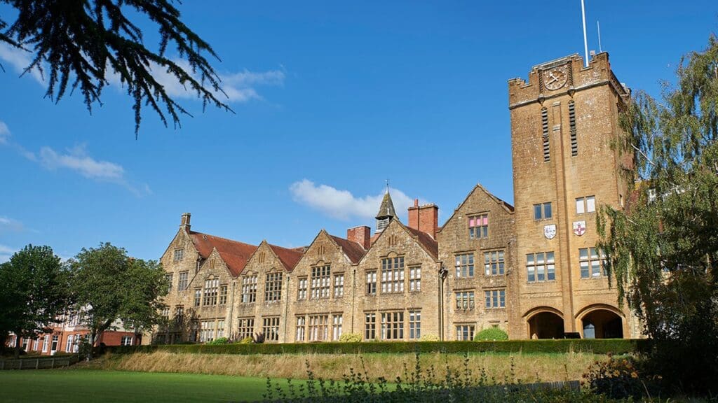 The Main School is a Grade II listed building and was built in three phases, likely to facilitate its funding. It features a large hall with high-quality decorations and a remarkable hammer beam roof, with great architectural detailing.