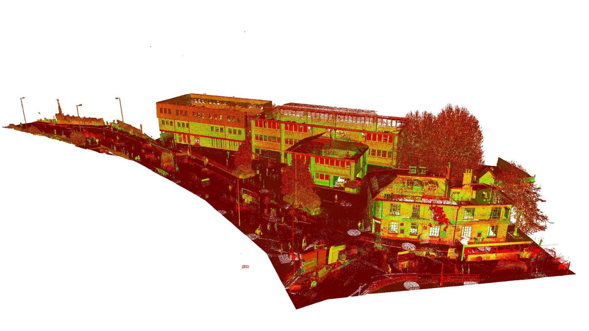 Surveybase were appointed to deliver a fully integrated surveying service, including a 2D Topographical, Utility, and Measured Building survey, as well as a 3D BIM Survey of the street and office building. This provided the client with an accurate 2D Topographical and Utility plan, 2D Building Elevations, and and 3D BIM model of the site.