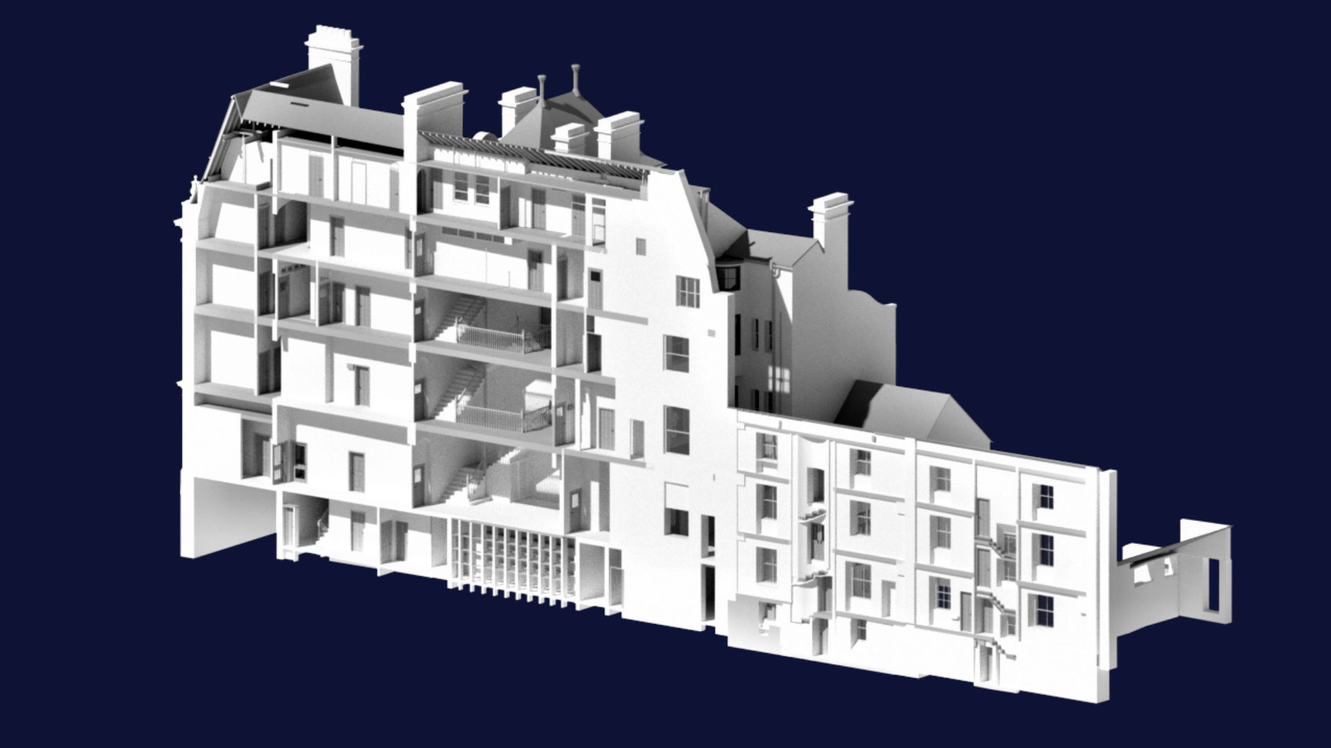 The digital Heritage 3D Revit Measured Building Survey of The Cambria, Aberystwyth.